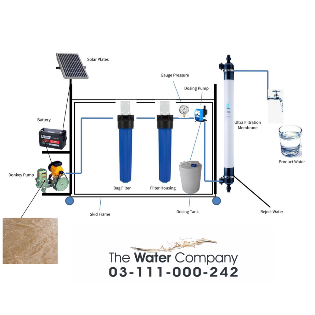 The Water Company provides state of the art Ultra Filtration Plant in Pakistan. Ultra filtration Plant is a pressure-driven membrane separation process that removes suspended or particulate matter (including colloids & silt) from water. Ultra filtration Plant is more reliable than conventional multimedia filtration that removes particles of 10 microns in size or larger. Ultra filtration also efficiently removes bacteria and most viruses. UF plant eliminates the need for clarifiers and multimedia filters. Standard design is based on a UF module with outside-in flow configuration which allows for less plugging, higher solids loading, higher flow area and easy cleaning. We design fully customizable Ultra filtration systems according to costumer requirement.